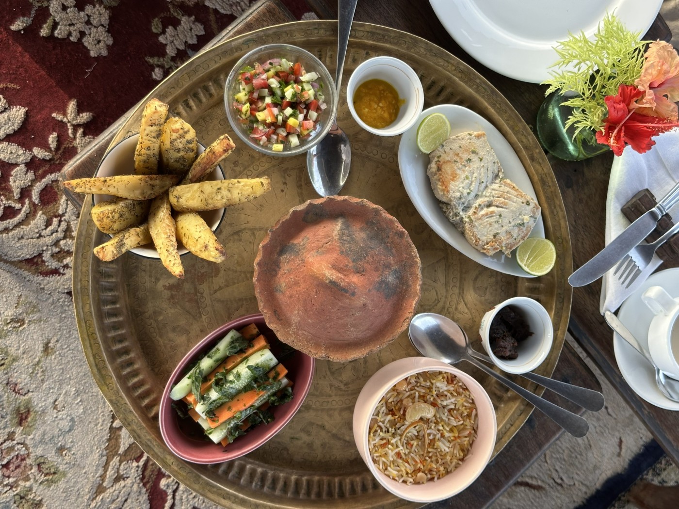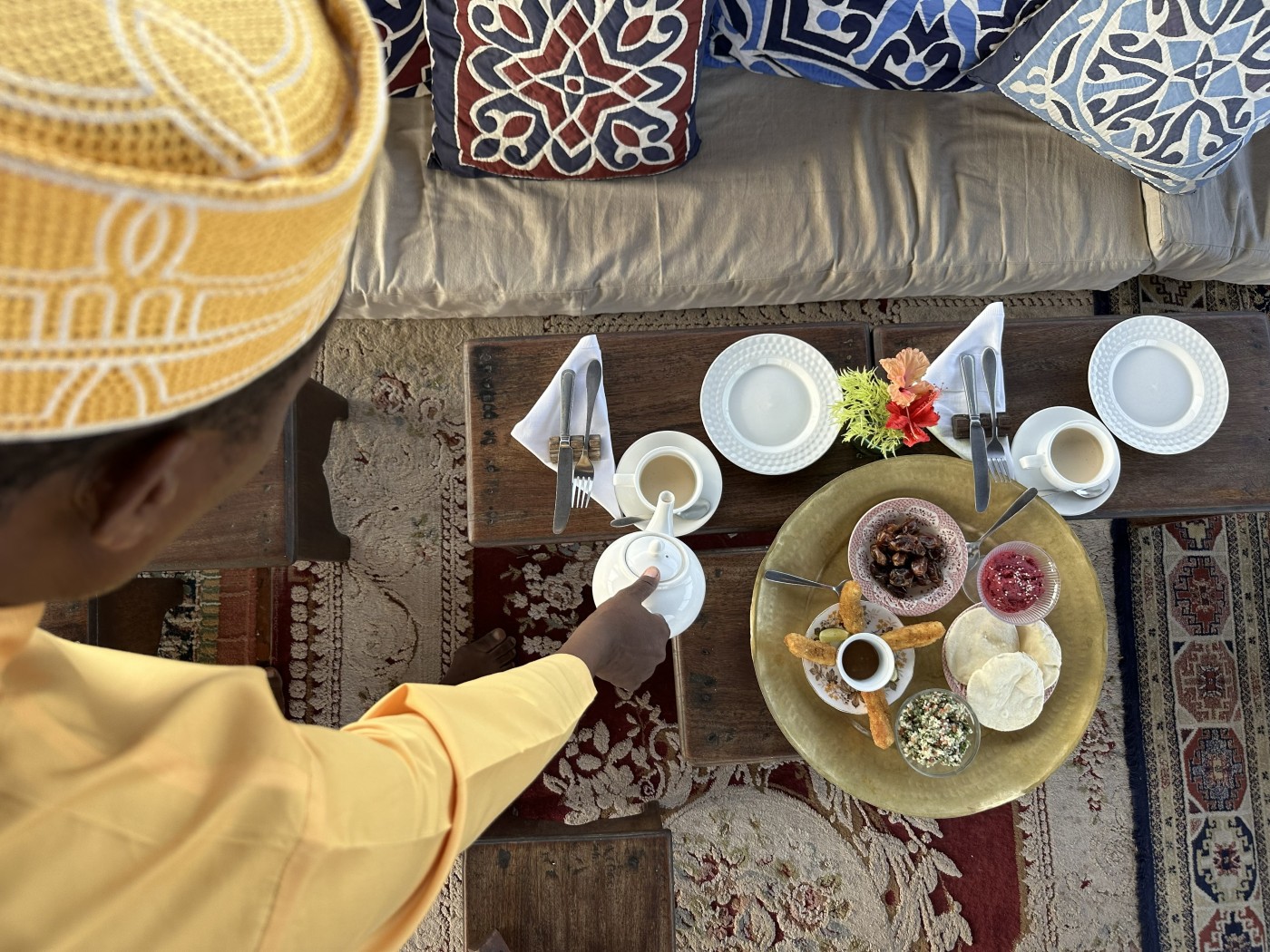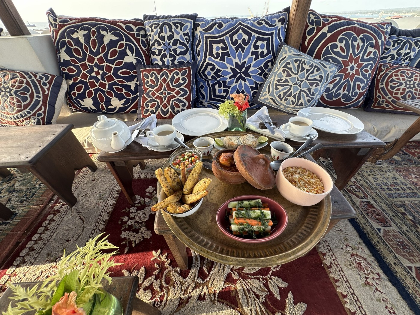 As calls for prayer fill the stone town air gather around a table made for sharing.